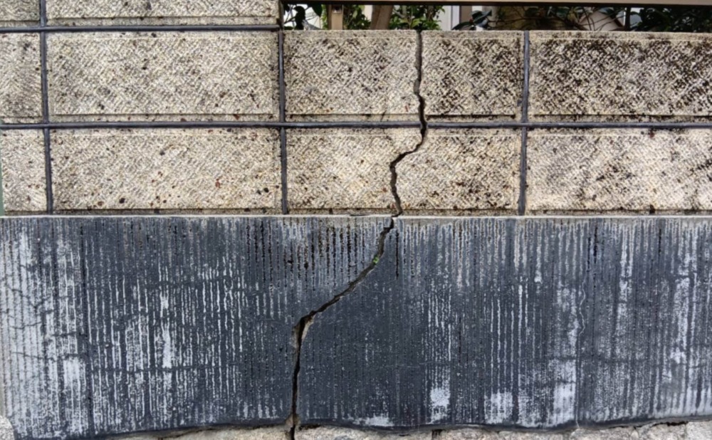 弊社代表に連絡があり「ブロック塀とブロック塀の基礎に大きなひび割れがあるので見に来てほしい。」と連絡がありました。