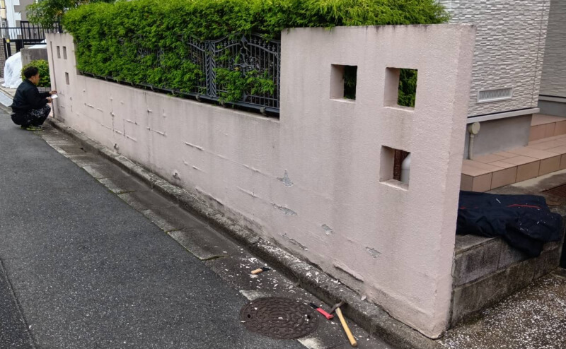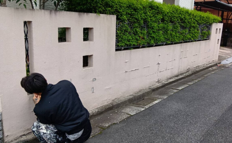 現地を確認させていただくと、たしかにブロック塀の塗装はかなり劣化おり、水が入ったため塗装が膨れた状態でした。